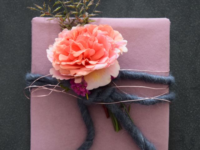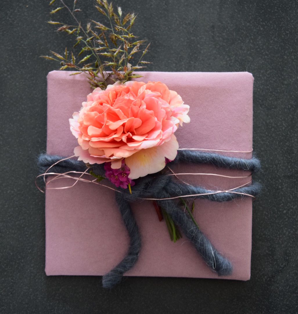 Dafür gestalten wir für Sie eine passende Geschenkhülle aus floralen und/oder gemixten Materialen.